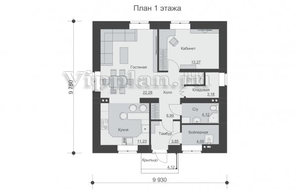 | Размеры дома: | 9.93м×9.78м |