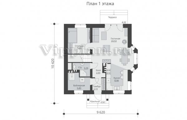 | Размеры дома: | 10.42м×9.62м |