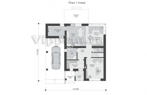 | Размеры дома: | 11.91м×12.56м |